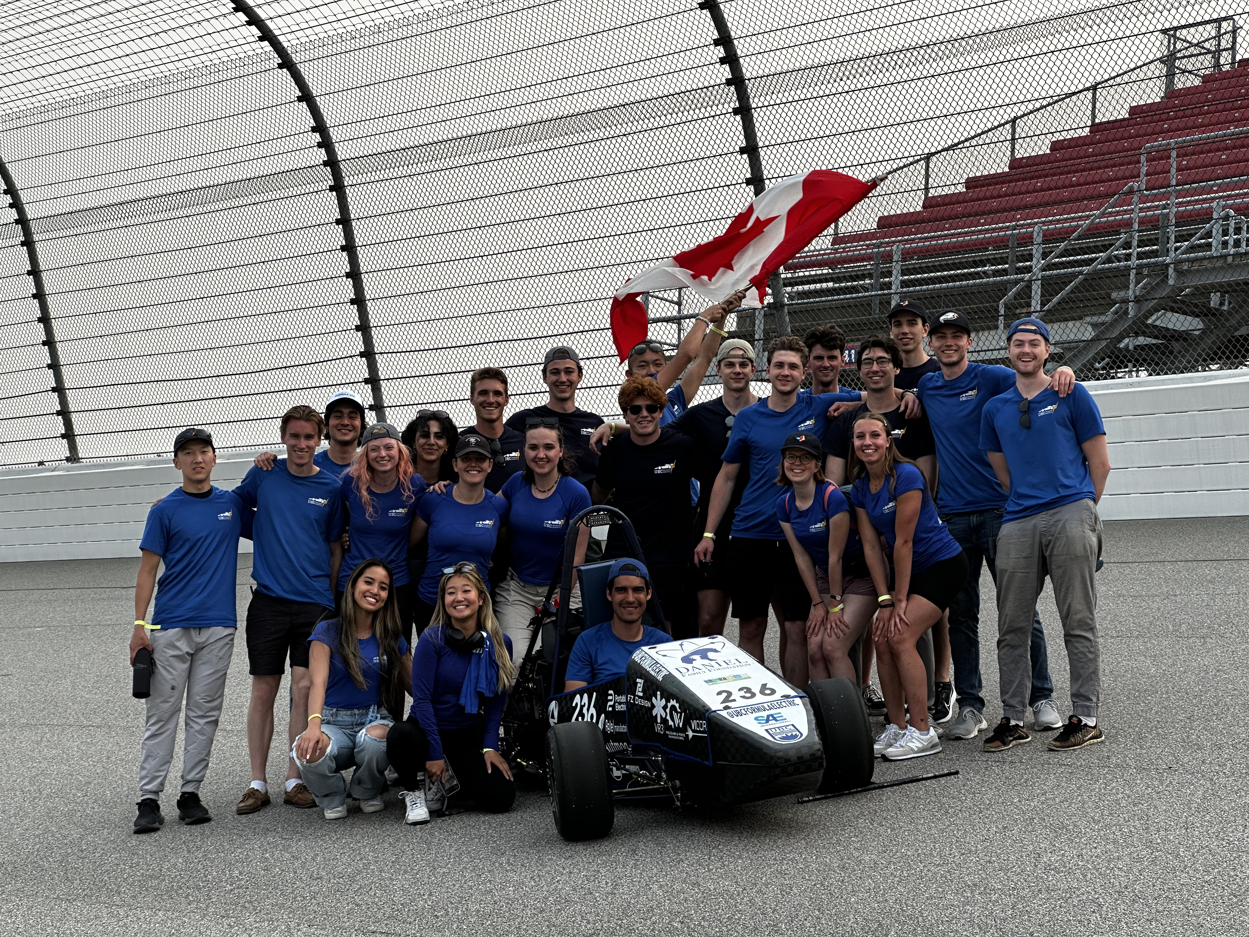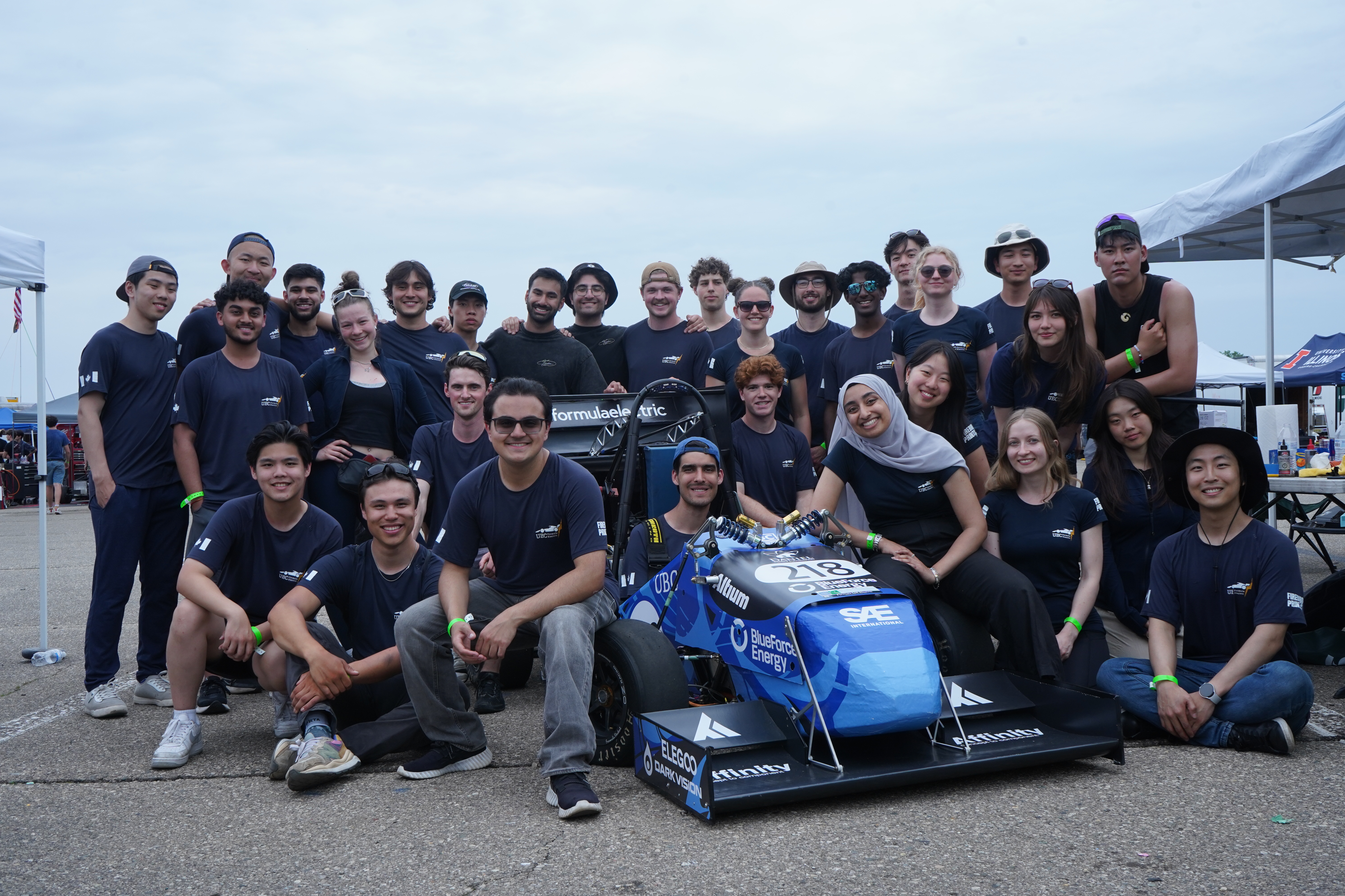 Picture of all the teams from FSAE Michigan 2025. UBC Formula Electric pictured middle left. Joseph Thurston on suicíde watch in car 218.