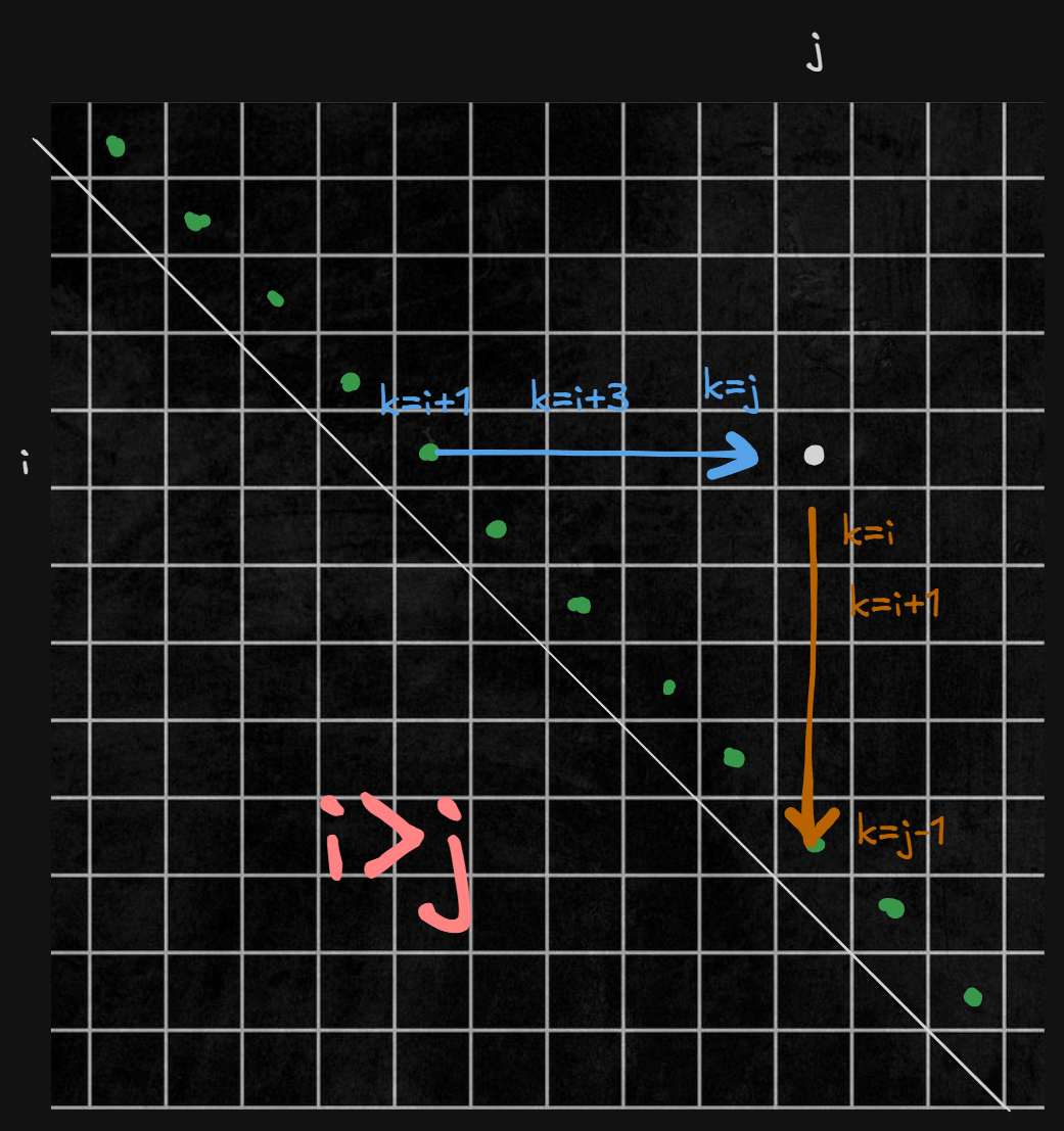 Finally, we consider how to traverse the DP table. From the structure of the transitions are visualized below.
